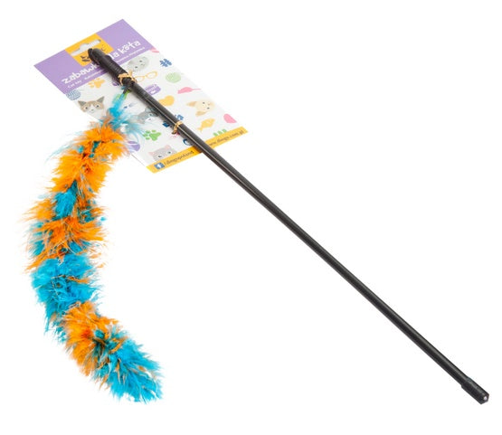 Dingo Wędka dla kota - ogonek z piór niebiesko-pomarańczowy