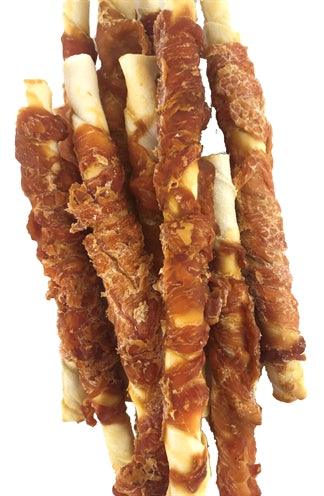 De I Am Duck Twist 20 cm 400 gr hondensnack is een smakelijke kauwsnack voor de hond, bestaande uit gedroogde runderhuid met eendenfilet. Een smakelijke, natuurlijke snack die bovendien helpt bij het verzorgen van het gebit! Tijdens het kauwen, wrijft de runderhuid langs de tanden. Dit helpt bij het verwijderen van tandplak. Het laagje eendenfilet geeft de sticks een heerlijke smaak.