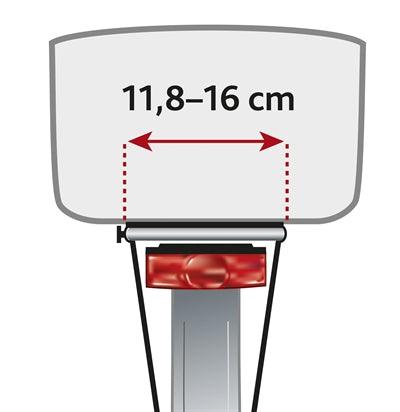 Niet geschikt voor bagagedragers smaller dan 11,8 cm of breder dan 16 cm