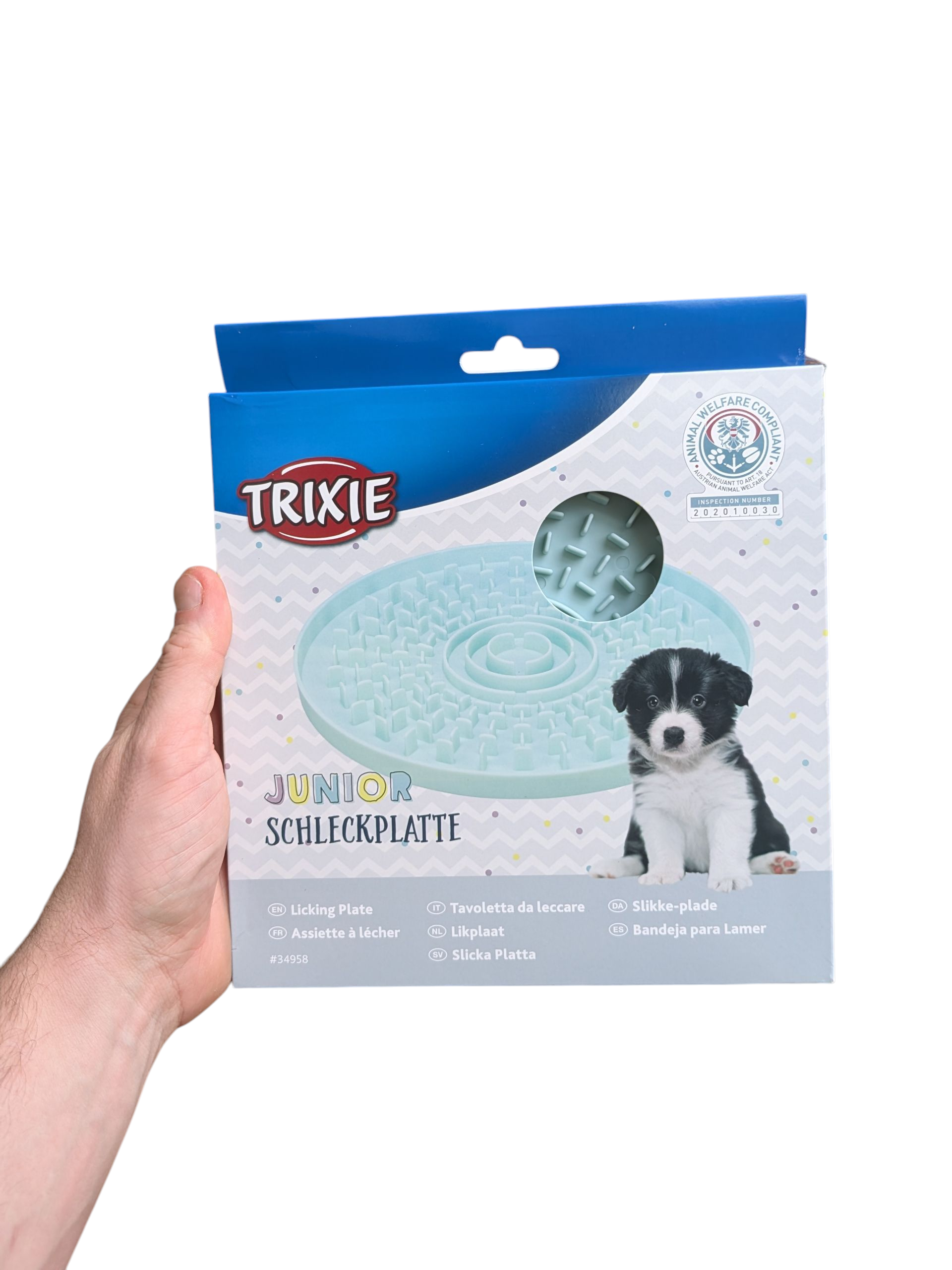 De Trixie Junior Likplaat is een slimme en rustgevende manier om jouw puppy of kleine hond bezig te houden. Deze ronde likmat is perfect voor het serveren van paté of natvoer, waardoor je hond op een kalmerende en langzame manier kan genieten van zijn traktatie. Likken helpt stress te verminderen en voorkomt verveling. Voor extra verkoeling op warme dagen kun je de likplaat met een lekkere snack invriezen, zodat je pup nog langer plezier heeft.