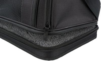 De Trixie Gate is vervaardigd van stevig, vormvast EVA in combinatie met hoogwaardig polyester. Hierdoor blijft de tas mooi in model, biedt hij voldoende bescherming en voelt hij toch licht aan. Dit maakt het dragen een stuk aangenamer, vooral op langere trajecten of bij overstappen op het vliegveld. De bodem van de tas is gevoerd met zacht materiaal in schapenvachtlook, wat niet alleen comfort biedt, maar ook warmte vasthoudt. Deze bodemplaat is bovendien waterdicht én uitneembaar, zodat je hem eenvoudig kunt reinigen bij ongelukjes onderweg.
