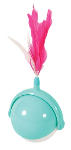 De Zolux Cat Player 1 Tuimelaar 11,5 x 9 x 24,5 cm is leuk kattenspeelgoed dat uitdagend beweegt en voorzien is van een staart van veren. Dit speelgoed is ideaal voor katten die zich in hun eentje moeten vermaken! Door tegen het speeltje te tikken rolt de bal door de kamer en wiebelt de bovenkant van de tuimelaar heen en weer, waardoor het staartje met veren op een aantrekkelijke manier heen en weer beweegt. De kat zijn jachtinstinct wordt aangewakkerd en jouw dier zal uren zoet zijn met het vangen en achterna zitten van de tuimelaar. Geen batterijen nodig en uitgevoerd in echte modekleuren, wit en mintgroen met roze veren voor een leuk contrast!